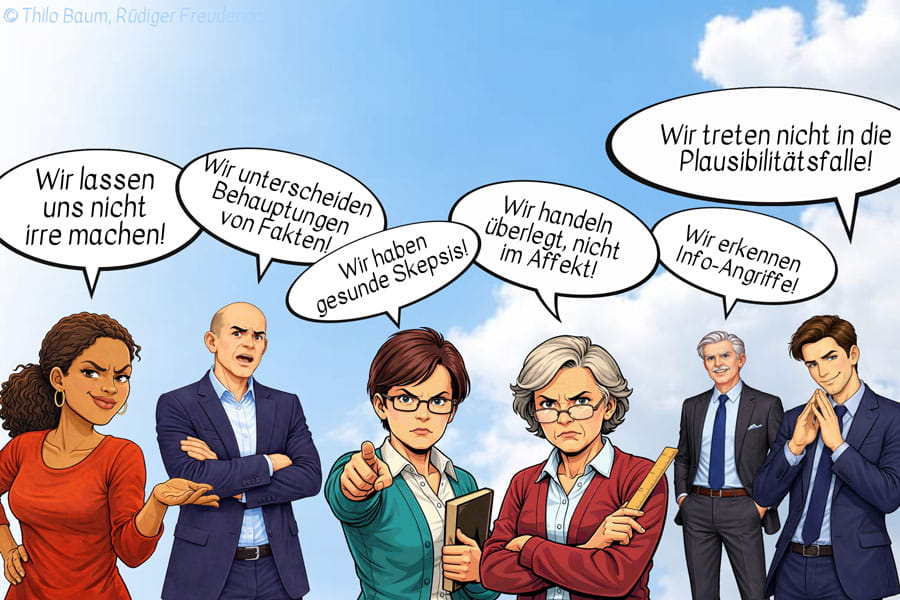 »Ich habe gelernt, wie ich Fake News strukturiert entlarve und mit Teilnehmenden nachvollziehbar analysiere. Die Materialien, die Thilo Baum zusammengestellt hat, lassen sich sofort einsetzen.«