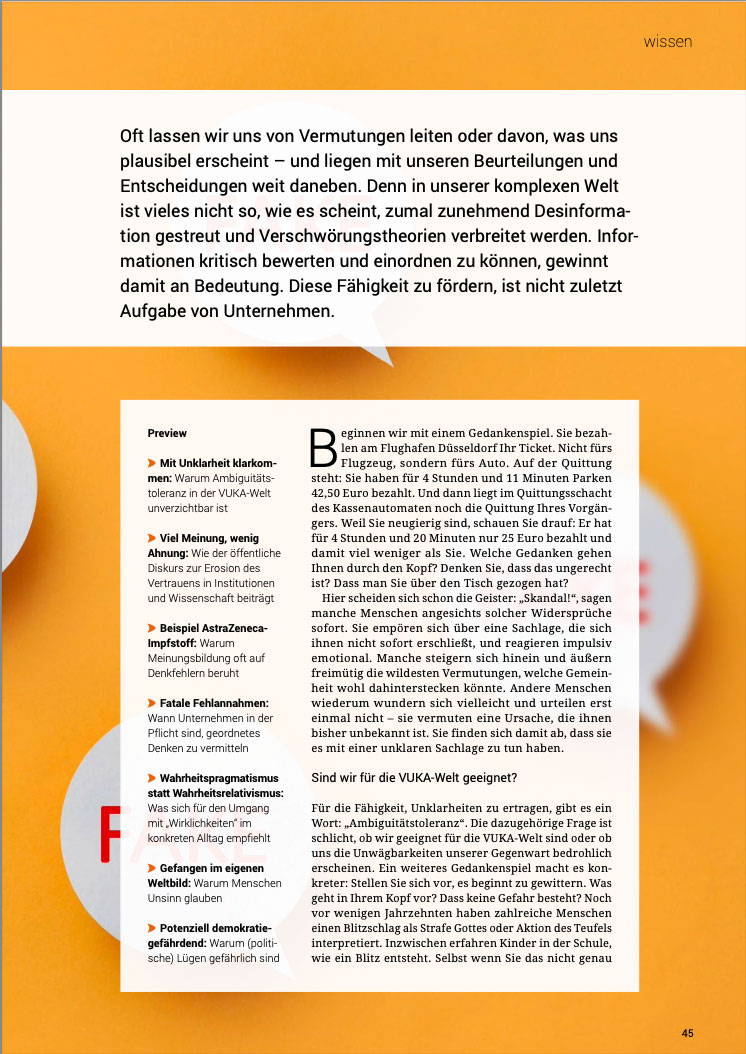 Vor allem in »Sozialen Medien« begegnen uns immer mehr empörende Inhalte, die sich bei näherer Betrachtung als falsch herausstellen. Wer nicht weiß, dass diese Inhalte Teil eines hybriden Angriffs auf die demokratische Gesellschaft und auf Unternehmen sind, ist hoch gefährdet.